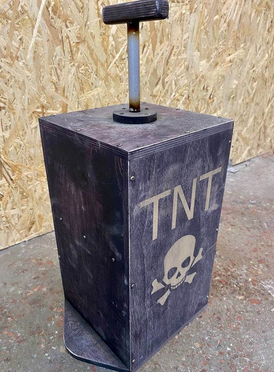 First, players will need to activate the fuse. They will connect the pedestal with dynamite and the fuse with a cable, then activate the fuse with a key by pressing the handle down and then the explosion effect will work with the help of a smoke machine, a searchlight and a sound effect.