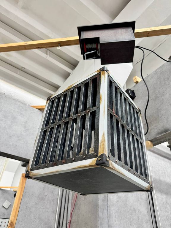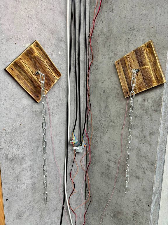 An electric bridge with two circuits is provided for this case. There are two wooden frames hanging on adjacent or opposite walls, each with a chain mounted in it. To create a chain reaction effect, players need to hold hands, and the outermost players will take the chains with their hands and pull them down, then the cage will begin to descend.