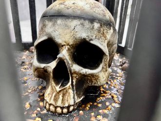 Before that, the players will find a small key to the lock of the cage and will be able to open it. There is a hidden cache inside the skull, opening which the players will take away the contents of the cache.