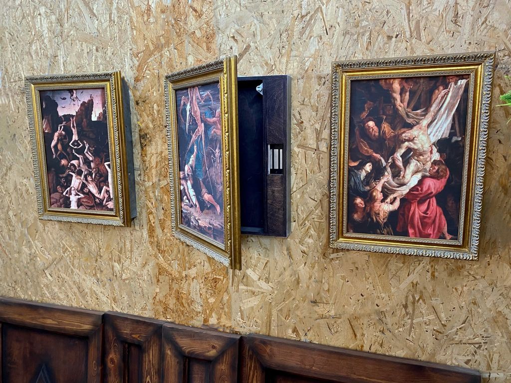 After solving this mystery, a secret place in the painting is opened. There are three paintings in total – one with a hiding place in the middle, and the other two are fake.