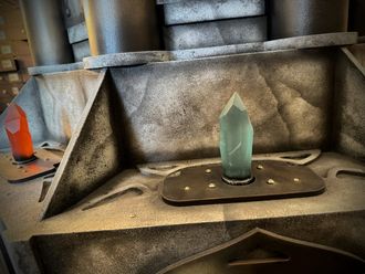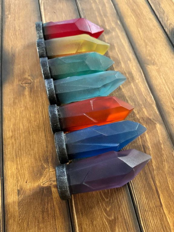 There are special recesses around the Fountain. The task of the players is to insert crystals in the correct color order (crystals can be replaced with horcruxes). When the task is done correctly, a cache will open in the Fountain.