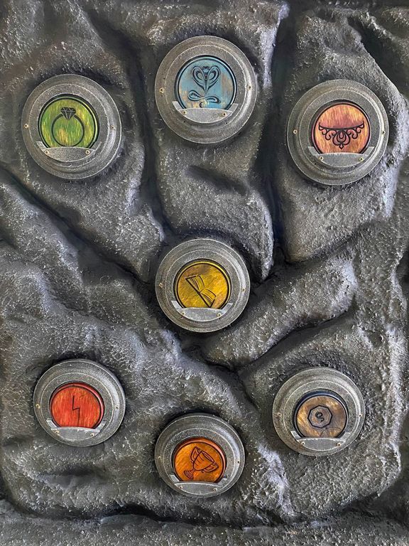 There are special recesses on the front of the Grotto. The task of the players is to arrange all the horcruxes in the correct order. When everything is done correctly, a hiding place will open at the bottom of the grotto.