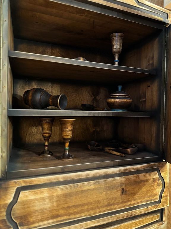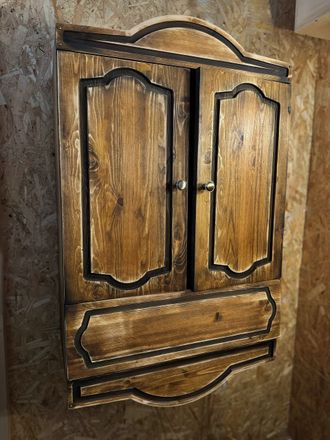 Decorative kitchen cabinet, two doors of which are always open. Players can immediately interact with the locker by finding some hints or objects inside.