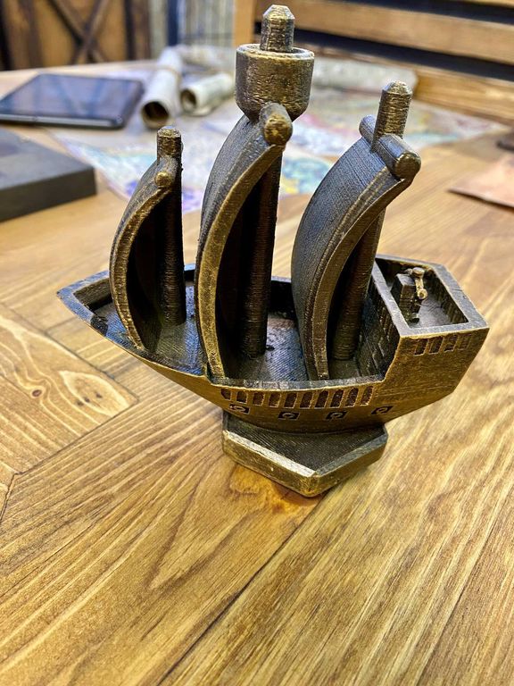 The ship's figure found in the captain's box must be leaned against the map and the ship must be moved in the same way as indicated on the map in the diary. If the correct path is built on the map, the sound of the market will sound as an indicator of the solution of the riddle, after which the cache will open or the next riddle will be activated.