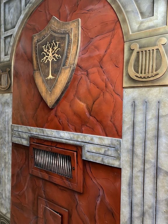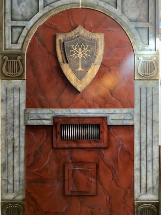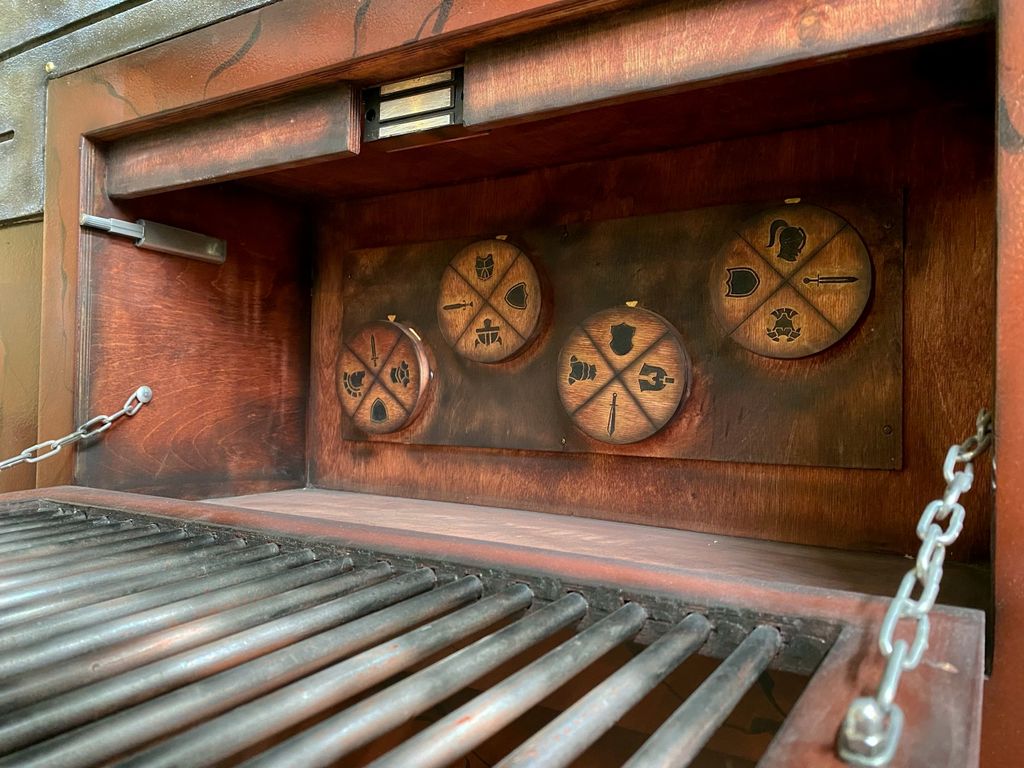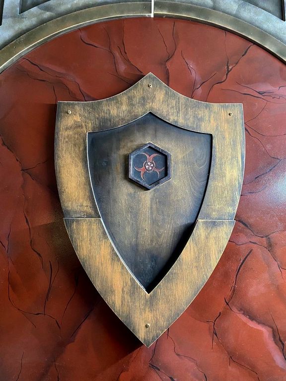 The wall is equipped with a place for a shield, inside of which there is a recess for a medallion. When players try to remove the shield from a large wall, a sound and light effect will work. Players will need to find the base for the shield and place the shield there, after which the caches will open.