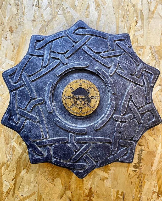 A round panel with ancient patterns, vaguely reminiscent of Celtic runes. During the game, players will find a medallion, which will need to be attached to a special hole on the panel. After this action, the cache will open or the next puzzle will be activated.