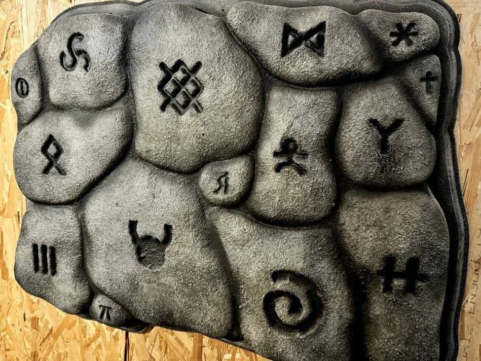 Various sacred runes are applied to the panel. But players won't need all of them, and a special crystal will help them understand which ones. The correct runes are highlighted upon contact with the crystal.