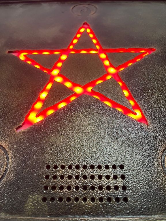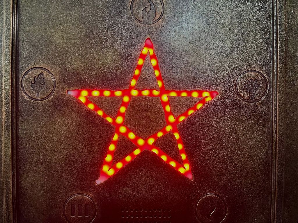 At the right time or after certain actions, the pentagram will activate and light up in the central section in red.