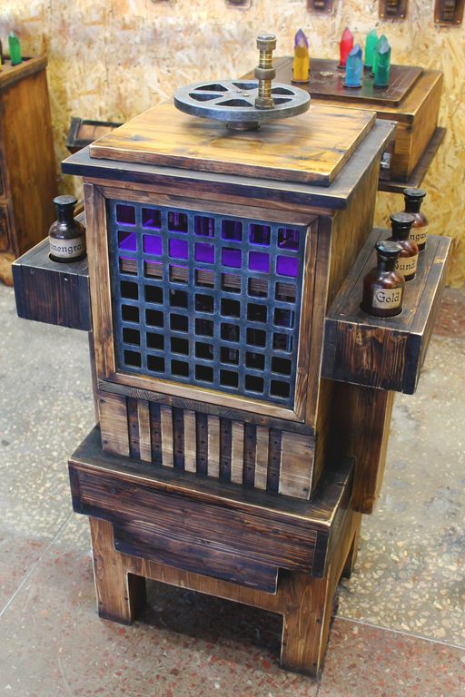 After setting all 6 potions in the appropriate order, you need to turn the knob in a circle and then the backlight will light up, the built-in smoke machine will start blowing smoke and the cache with the desired elixir of immortality will open.