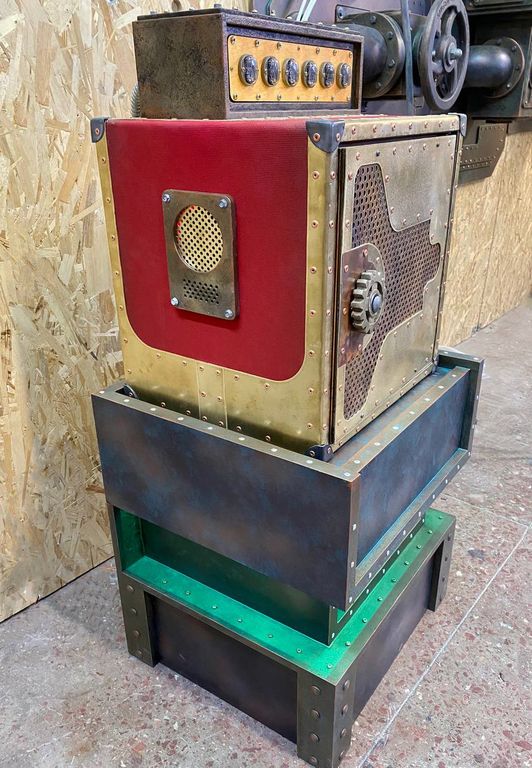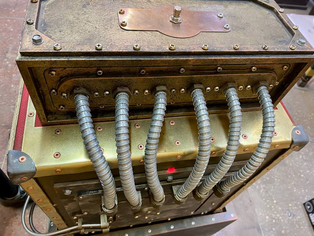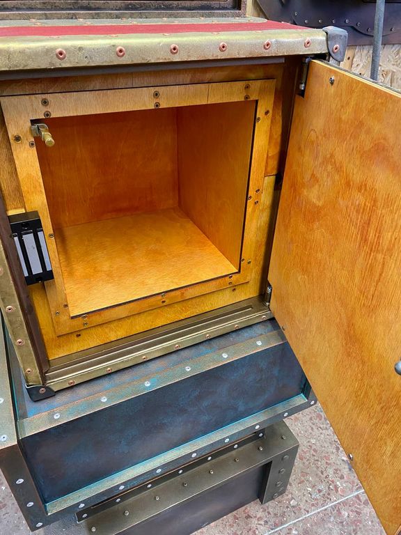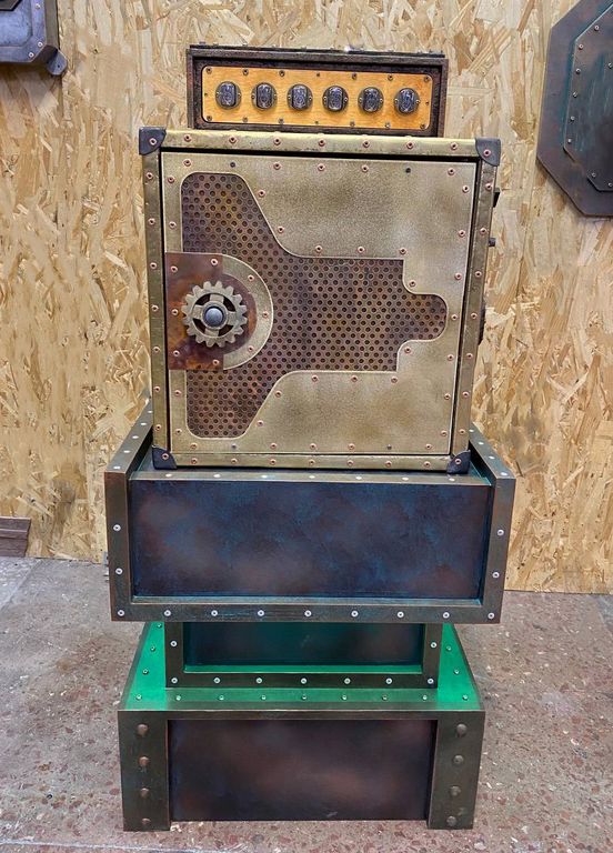The safe is equipped with a stand, a scoreboard with gas lamps that show numbers and switches.