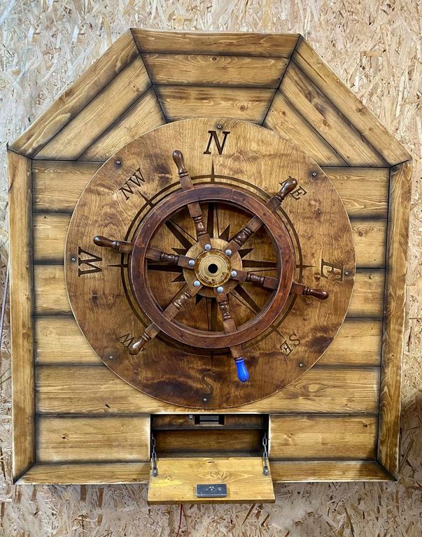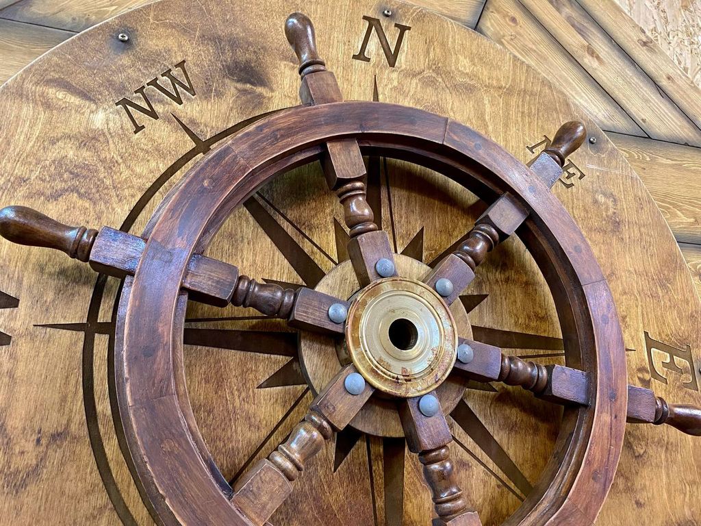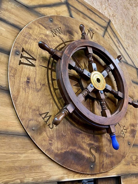 At the helm, a wind rose and all directions of the world are engraved on the circle. At the helm, one sword is marked in blue as the leading one. If you repeat all the directions exactly as they are indicated on the hint on the mini-map, then a hiding place in the same object will open.