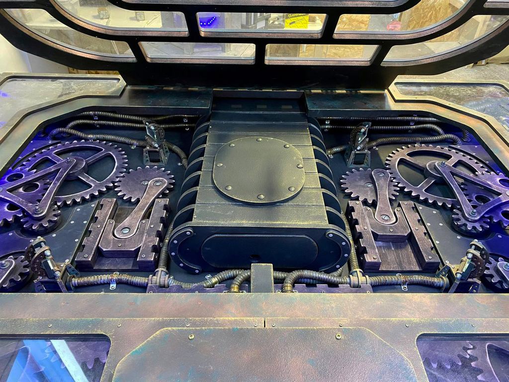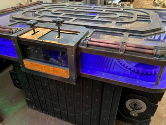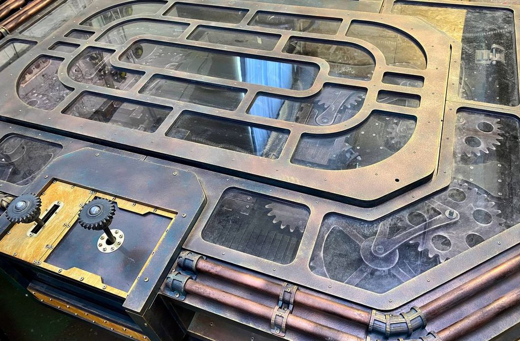 There is also a secret passage door in the laser table, which can be used in two ways.: 1) players can crawl through it to the next room; 2) the door can be used as a large hiding place in which you can hide an item from the escape room.