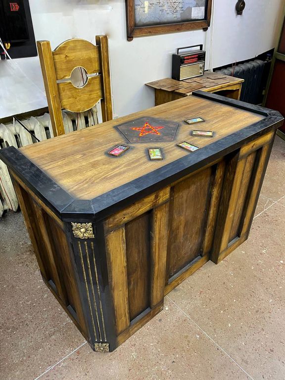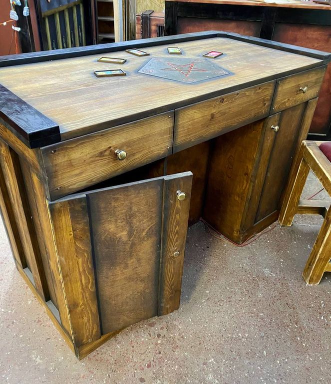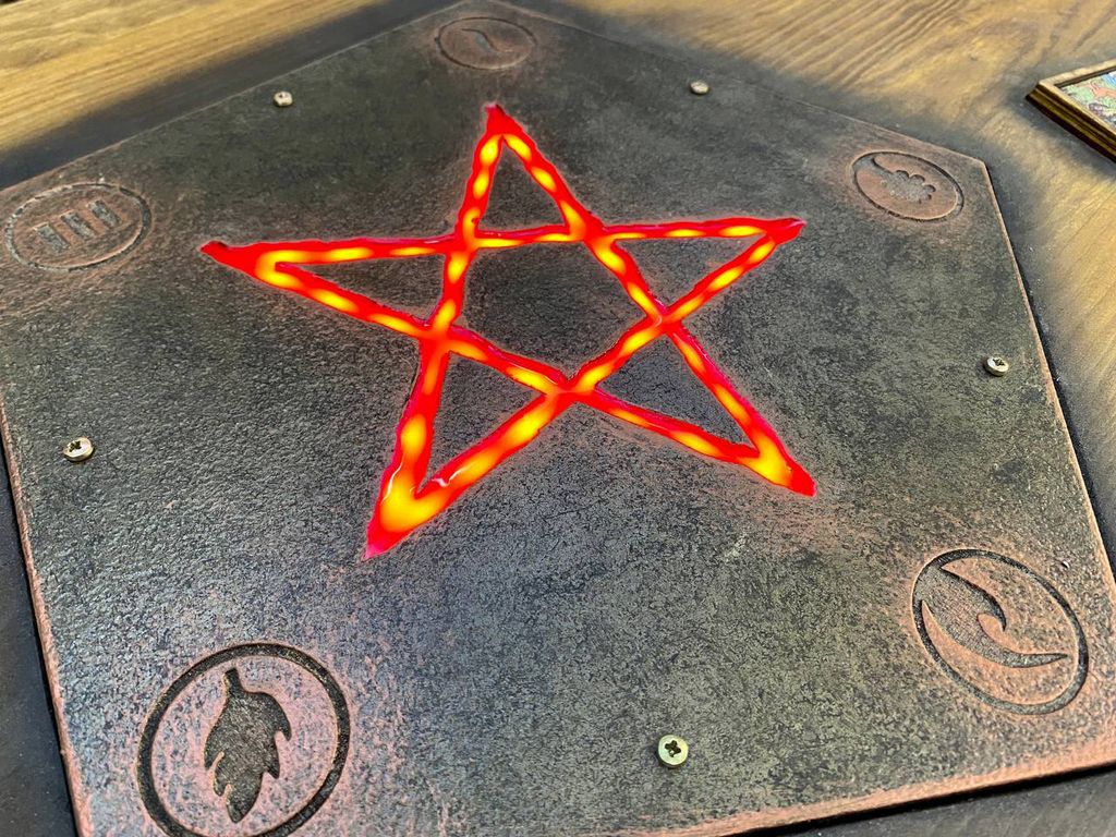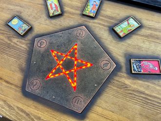 Table with pentagram and cards
