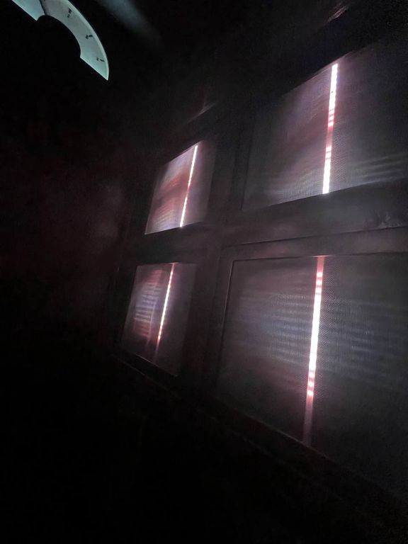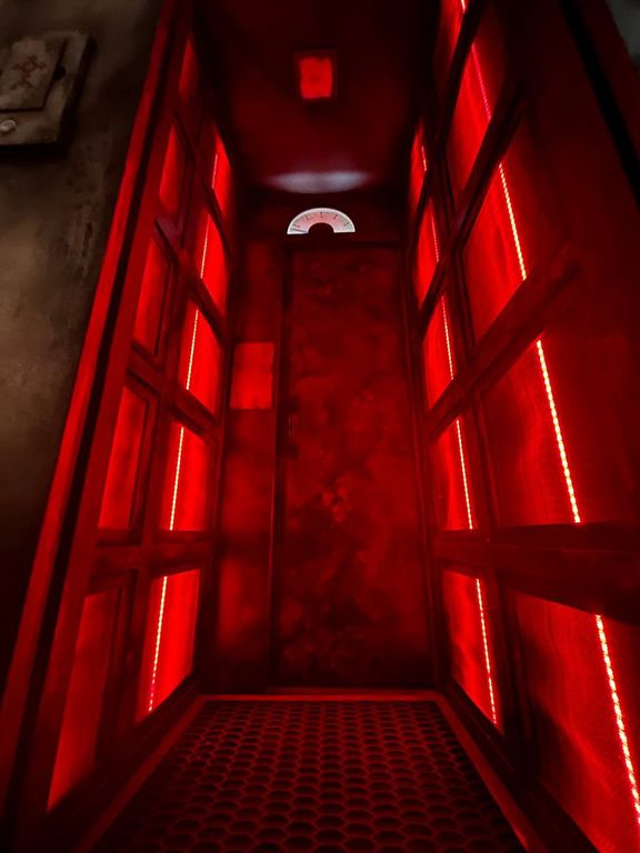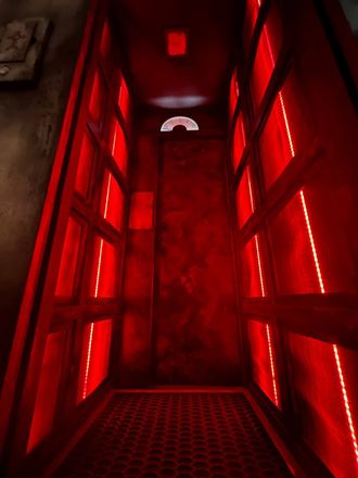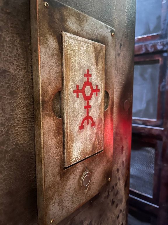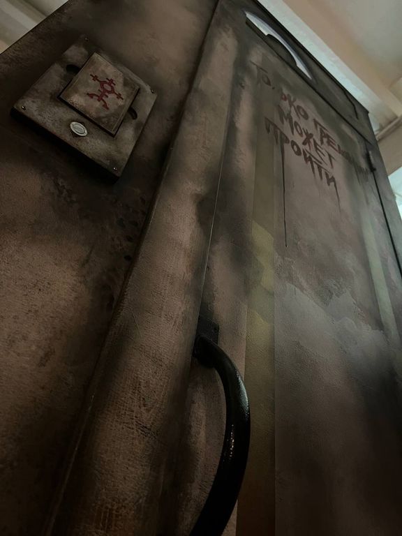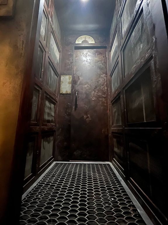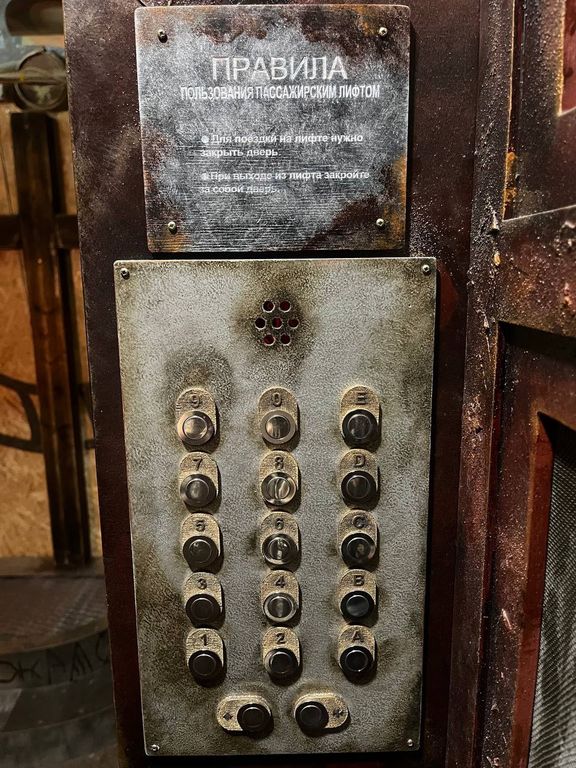 There is a memo on the wall with the rules for using the elevator, as well as a panel with letters and numbers. It is necessary to dial B202 on the panel. In this case, the sound effect will turn on, the light will go out, and a ribbon will start flashing through the holes behind the walls, as if the elevator is moving down very fast. A red light will turn on in the floor and air will begin to circulate from below for the effect of movement. There is also a motion indicator inside the elevator in the form of an arrow board. The arrow moves, simulating the movement of the elevator down or up. When the elevator stops, the door opposite will open.
