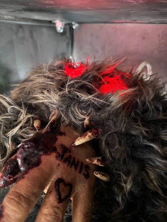 Players will need to examine the pipe under the ceiling using an endoscope. One player must lift the other slightly to reach the pipe or use a weighty element of the environment. Pushing the camera into the vent, players will see that a creature is sitting inside, holding a hand with a severed finger in its teeth. There's a tattoo on his arm. The operator will be able to press a button on the control panel, then the creature will jerk forward with a pneumatic sound to scare the players. The tattoo on your arm is the required password.